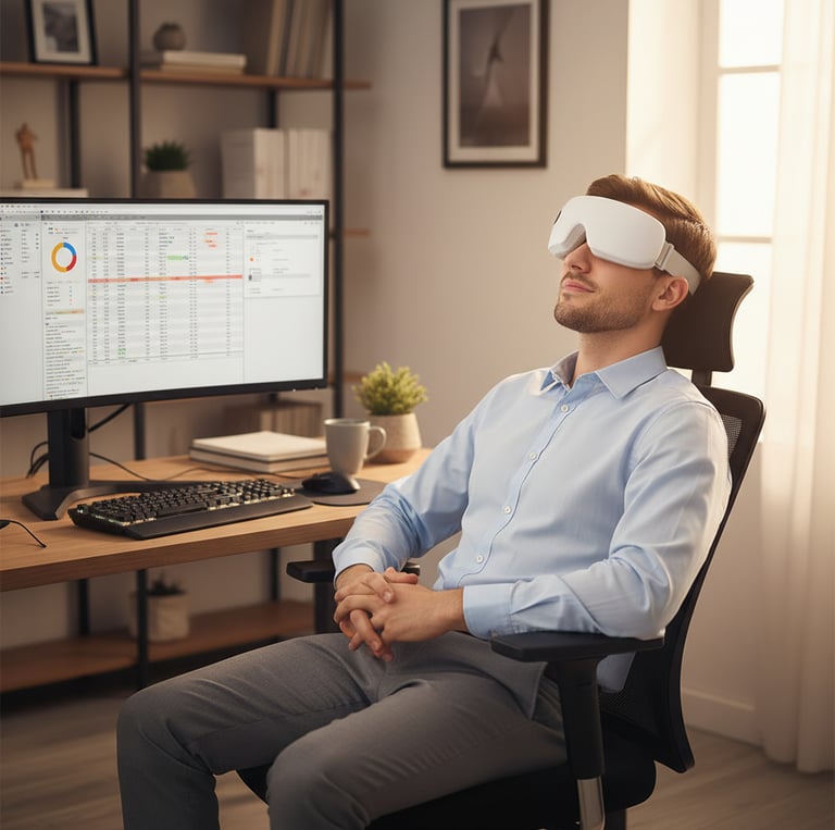 Nous vous proposons Oculux™ pour un rituel, C'est pas un gadget. Un moment de pause pendant ou après le travail pour vos yeux. Un espace de respiration, un temps pour se sentir encore mieux comme au reveil. Un geste simple qui change et renouvel votre énergie, votre présence, votre clarté.